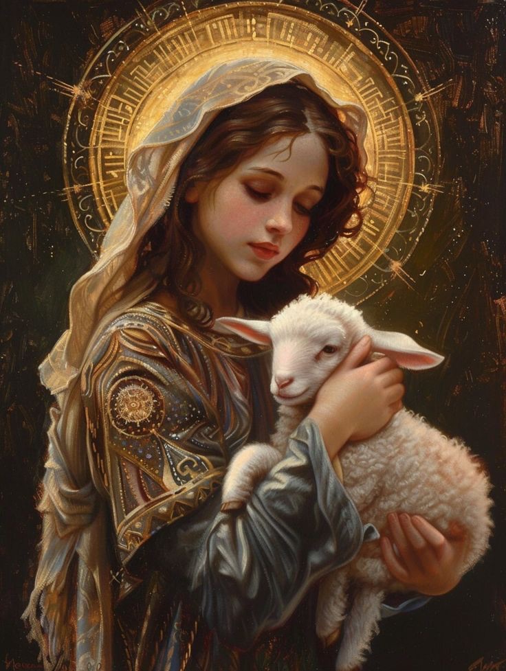 Agnes is often pictured with a lamb. In Greek, her name relates to the word for purity; in Latin it stems from the word for lamb. She was, in imitation of her Lord, a pure lamb of God.