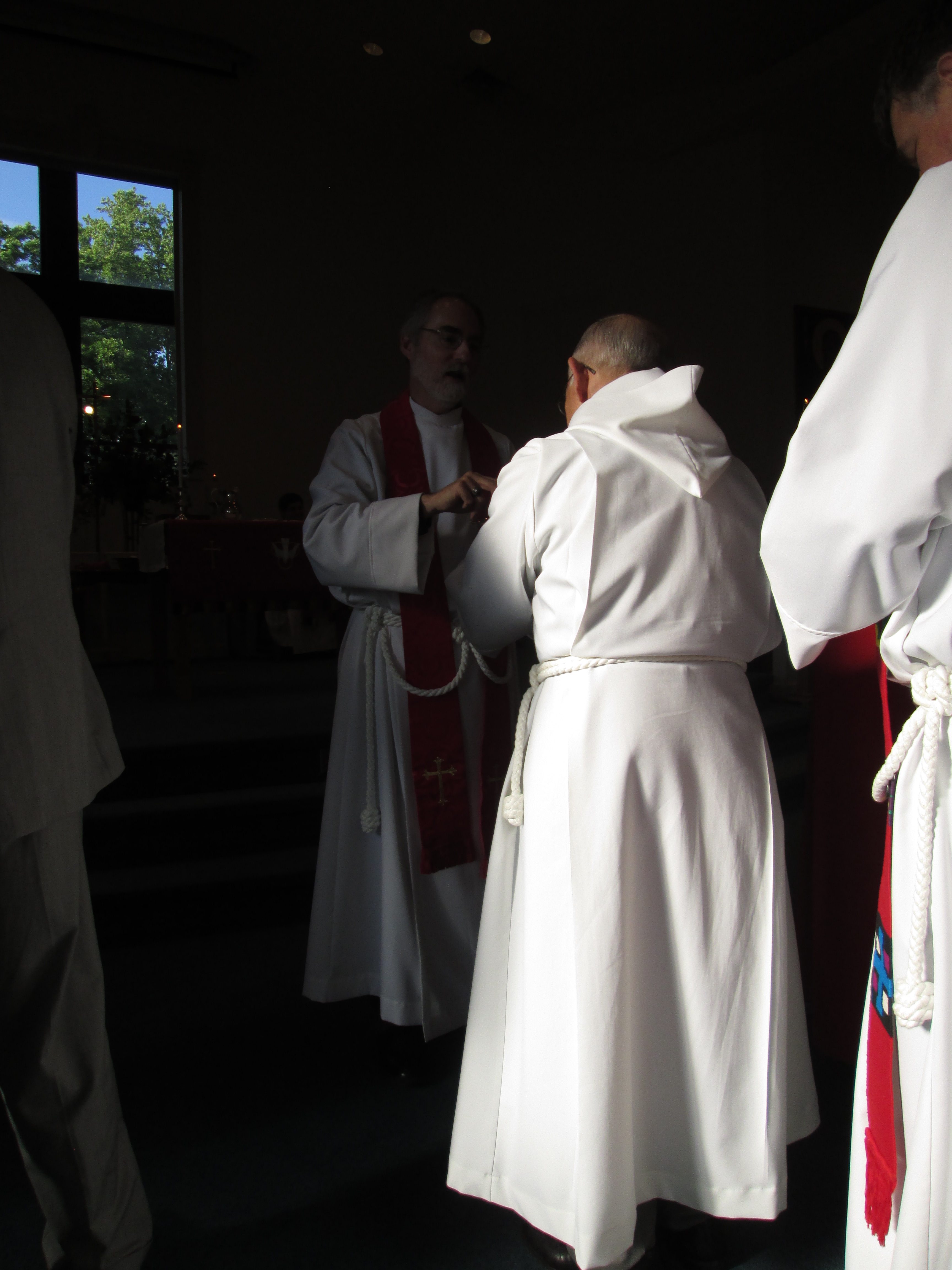 The celebrant moves to the table and stands in the fire of God’s love and grace as the last remnants of self are burned away, stands unworthy to gather up the crumbs under the Table and yet stands invited to serve as host in Jesus’ name. He speaks not his words, but ancient words, received words: prayer and hymn, blessing and invocation, institution and distribution. He consecrates bread and wine that he did not bring to the table and he shares it with those he did not redeem: the gifts of God for the people of God. When the people of God receive the body of Christ – the bread of heaven – some whisper, “Thank you.” It is not really the celebrant to whom they speak.