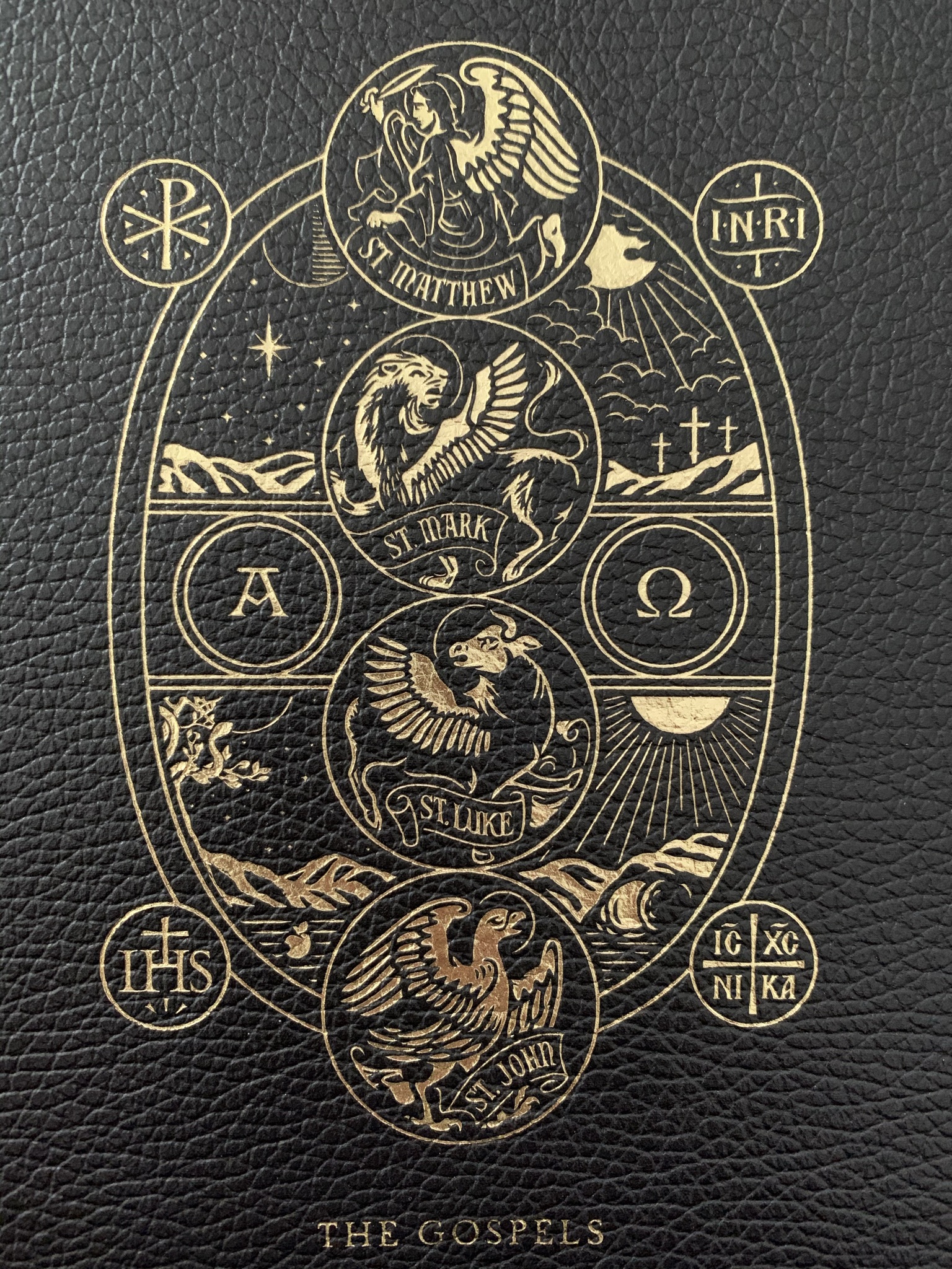 Why an eagle? As beautiful and necessary as the synoptic Gospels are — Matthew, Mark, and Luke — John’s gospel soars above them all. His eyes see, perhaps more clearly than the others, the broad sweeping landscape of salvation history — and not of history only, but of salvation future, too. And with this keener vision, he sees beyond the small villages and dusty roads of Galilee and Judea. He sees the entire cosmos as the venue and recipient of redemption: Jesus of Nazareth, God from God; Christ from the Jews, Christ for all creation; Christ the son of Israel, Christ the savior of the world. There is a “watermark” on every page of John’s Gospel, a faint text written behind all the others words: