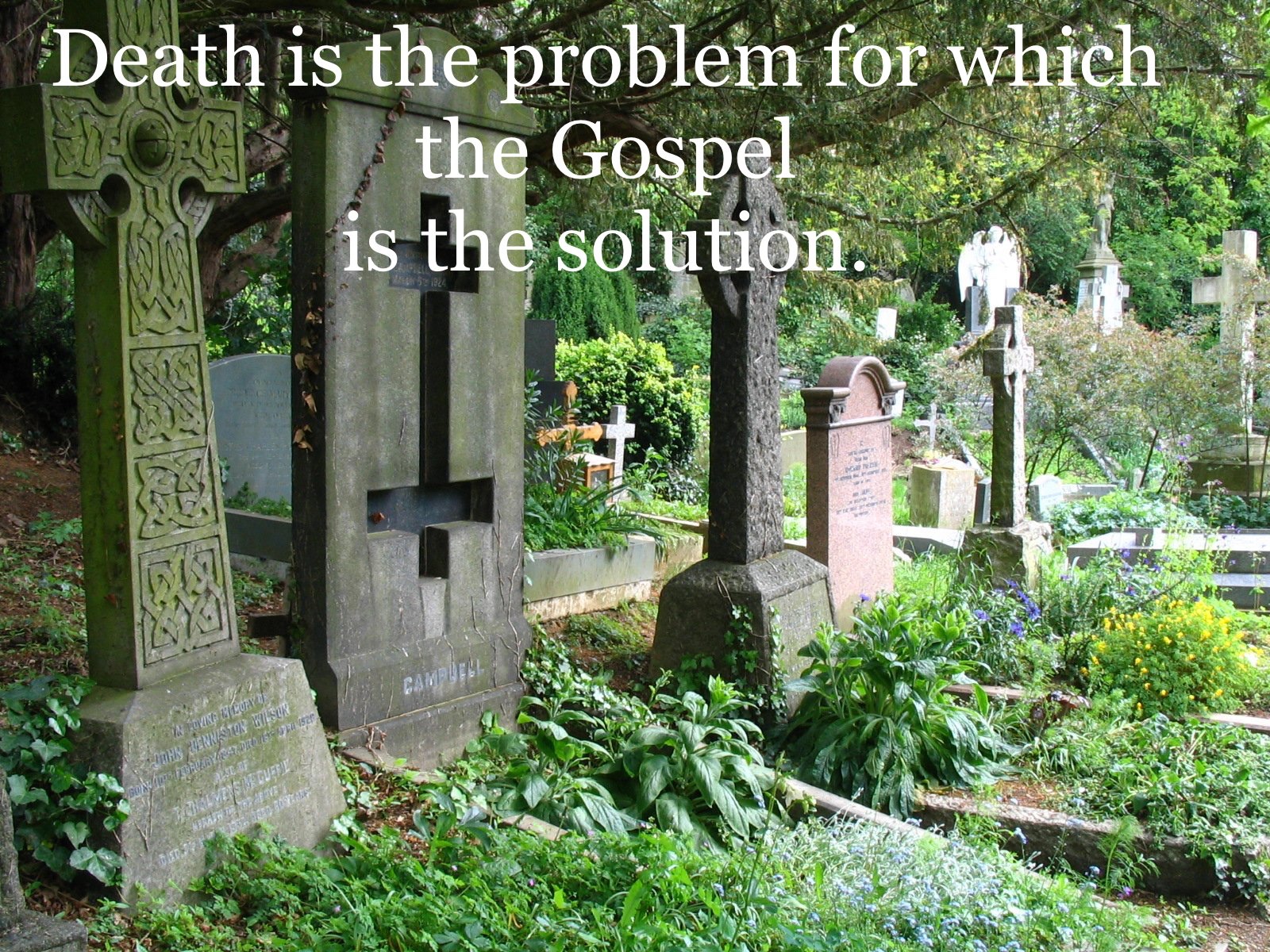 I start with this central notion: Death is the problem for which the Gospel is the solution. While that is true, it is only part of the truth. More completely we should say that the Gospel is the solution to three existential crises facing man: (1) the rule of the demonic powers — Satan and his fallen angels — over man, (2) death, both spiritual and physical, and (3) sin. The Gospel is the proclamation that, in and through the life, death, resurrection, ascension, and parousia of Jesus, God has begun to deal with and finally will deal with these three crises. All three are related and really need to be discussed together, but that must be a story/lesson for another time. Our focus in this lesson is on death. So, I say again: Death is the problem for which the Gospel is the solution.