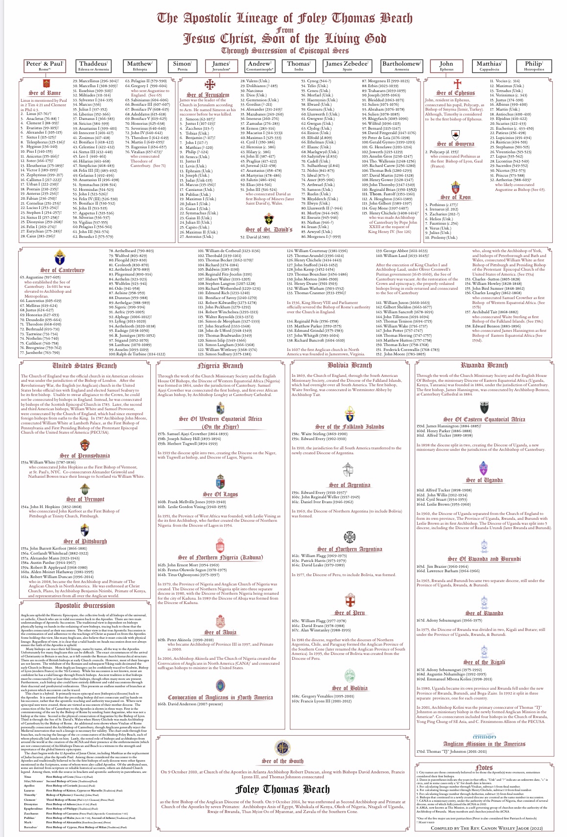 For the research leading to and the publication of the following chart of Apostolic Lineage we are indebted to the Reverend Canon Wes Jagoe; his work is a gift to the ACNA and thus to the one, holy, catholic, and Apostolic Church.
