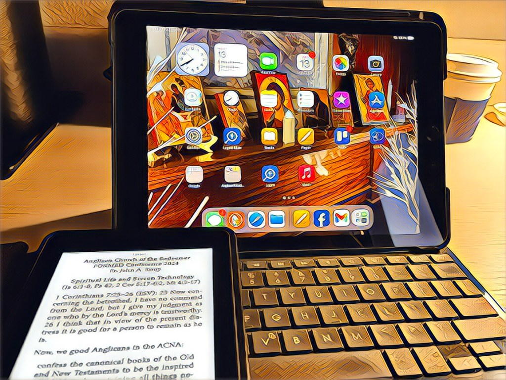 I have been asked to preach on “our spiritual life and our screen technologies.” And now you see the nature of the problem. There is no command from the Lord, in Scripture, about screens. Once, while enjoying an ice cream cone the thought struck me that Jesus never tasted ice cream. It is equally true that Jesus, in his humanity as a second temple Jewish peasant, could not have imagined the devices we take for granted — the iPhone or the iPad or the Mac or the Kindle or the television or any of the screens that light my life, demand my attention, and form, or deform, my spirituality. Nor could Sts. Paul or Peter or James or John or Jude or any of the other New Testament writers. So, we do not have, nor could we have, a direct command from the Lord about precisely such things. But we do have wisdom in the Scriptures and in the Church that may rightly inform our judgments about such things. That is what I can offer.