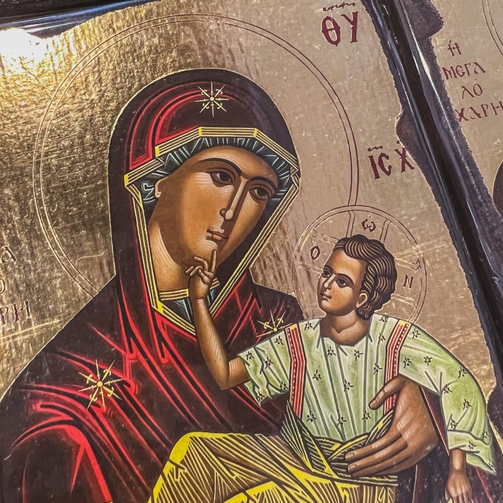 The icon which is painted with devoutness draws the Grace of God from the devout iconographer, and then eternally transmits solace to the faithful. The iconographer is depicted, translated, into the icon he makes; that is why the spiritual state of the iconographer plays such an extensive role. Father Tychon used to tell me, “My son, when I paint the Epitaphios icon, I chant the hymn: “The noble Joseph, after taking down Your sacred Body from the Cross, wrapped it in a clean shroud and laid it in a new tomb.” He used to shed tears as he chanted, and his tears fell upon the icon. Such an icon preaches an eternal message to the faithful of the world. Icons preach eternally down through the ages. One who is suffering will look upon an icon of Christ our Lord or of Panaghia and receive comfort (Saint Paisios the Athonite, Spiritual Counsels II: Spiritual Awakening, Holy Hesychasterion “Evangelist John the Theologian” (2024), p. 171).