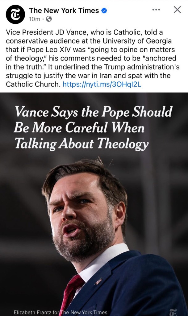 That one can be drastically wrong, fundamentally right, and profoundly confused in very short order is manifest in Vice President Vance’s comment above: if Pope Leo is going to opine on theology, his comments need to be anchored in the truth.