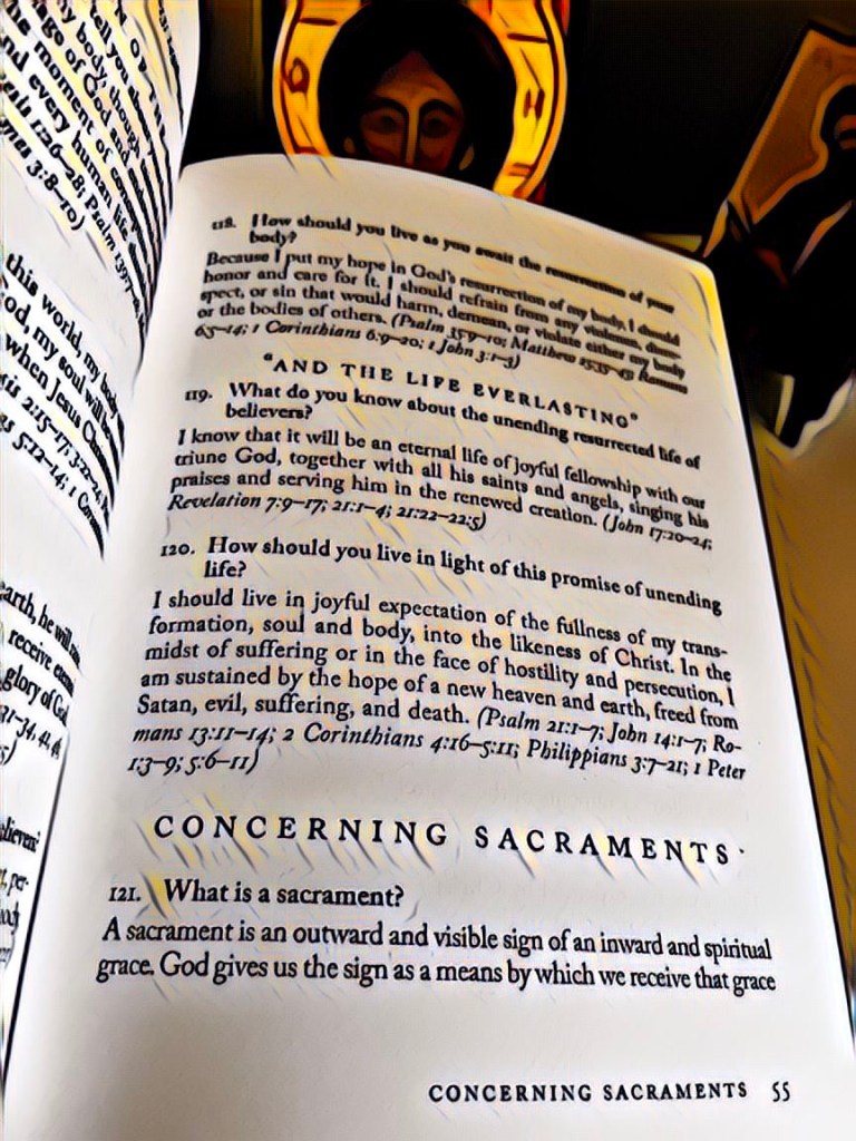 Now, I don’t want to make too much of the precise language used her, but I do find it interesting. The work of God the Father in my creation is past tense: who created you. The work of Jesus Christ is past tense: who redeemed you. But the work of the Holy Spirit is present and continuing: who sanctifies you. The work of the Holy Spirit will be past tense, if ever at all, only with my last breath. Until then, my sanctification is the ongoing work of the Holy Spirit, and that is a comforting and encouraging thought.
